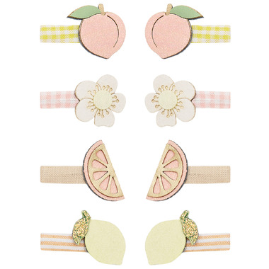 Add a splash of sunshine and a squeeze of fun with our Peachy mini clips! Gorgeous ginghams, linen and striped fabrics topped with the sweetest peaches, lemons and blossom flowers too - a little taste of summer for every hairstyle!