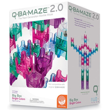 - Q-BA-MAZE 2.0 Big Box includes 72 cubes in five different colours and 20 marbles