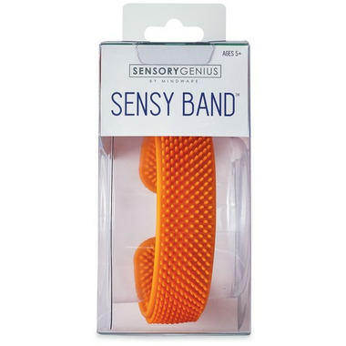Soothing textured silicone is the secret behind Sensy Bands ability to calm and focus the mind. The bright orange band is easy to slap on and take off and adjusts to any wrist size.