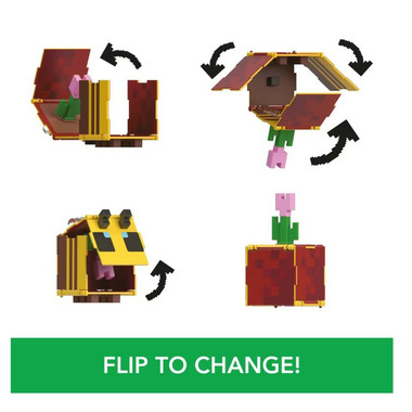 Calling all fidgeters! Get ready for nonstop action with Minecraft Flippin' Figs collectible figures! These 3.75-in scale Flippin' Figs can easily flip and transform back and forth from one figure to another. Just flip up the panels on each figure's oversized head and lock them in place to reveal a different Minecraft figure in seconds for 2-in-1 play that's meant to be repeated again and again! Plus, the character matchups make collecting fun for kids and adults alike, and Flippin' Figs stay true to Minecraft's signature pixelated design. Each sold separately, subject to availability.