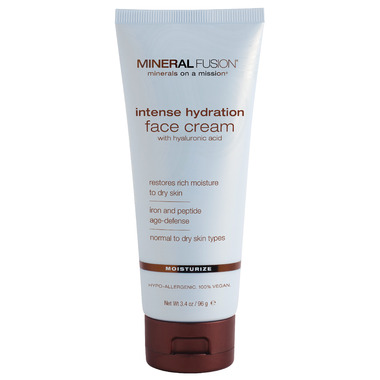 Mineral Fusion Intense Hydration Facial Cream is made with nutrient-replenishing Mineral Water, and ultra-nourishing Shea Butter, Rosehip Oil, and Hyaluronic Acid that provide rich, luxurious hydration for noticeably softer skin. The combination of calming botanicals (Aloe, Lavender, and Cucumber) soothe and comfort skin for a healthy-looking glow. While natural antioxidants, revitalizing Iron, and wrinkle-fighting, clinically tested, collagen-boosting peptide help firm and restore skin for a more youthful appearance.