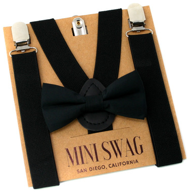 Mini Swag Solid Black Bow Tie & Suspenders Set
