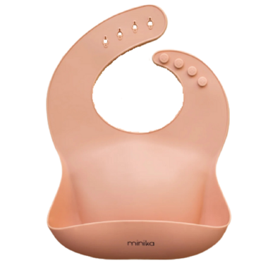 Silicone bib. Adjustable. Perfect for babies from 6 to 36 months. BPA-free and food grade silicone. Wash with soap and a damp cloth. Dishwasher safe.