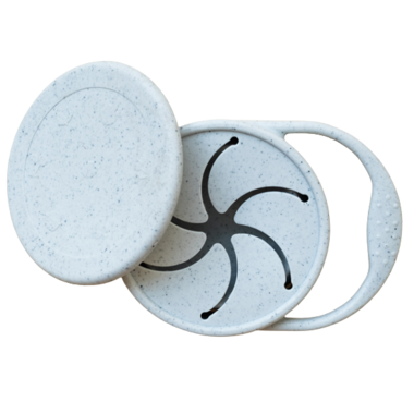 The ice snack cup with lid is BPA free and food grade silicone. This is easy to wash in the dishwasher or with soap and a damp cloth. It is also perfect to carry around with the small handle and is foldable for a big or a small cup! Microwave and freezer safe!