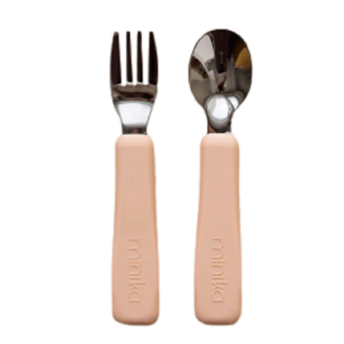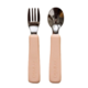 Fork and spoon set with silicone handle. Food grade silicone without BPA, PVC, phthalates and lead. Wash with soap and a damp cloth or in the dishwasher. Stainless steel. Non-slip silicone handle.