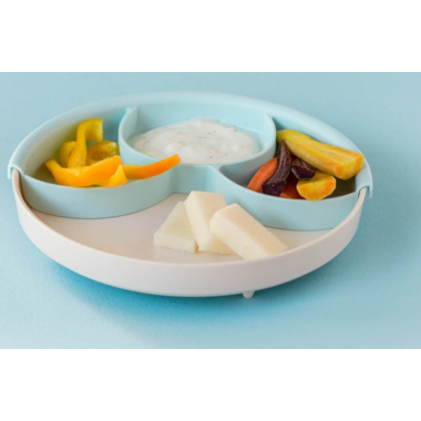 Unlike most divided plates, Healthy Meal is much more versatile. The removable silicone divider can be used within the plate during the "isolated foods" phase many little ones experience when foods shouldn't touch each other, and the divider can also be used separately as an extra plate to ensure this set does not become obsolete once that phase has been surpassed. The smart divider supports the main meal on the plate with small sides, sauces, dips etc or can even used on it's own. Meanwhile the PLA plate is large enough and shaped to help children develop cutlery skills, and with the detachable suction foot removed works and looks just like a grownup plate!