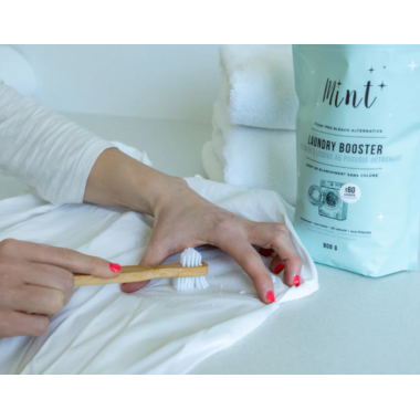 Mint Laundry Booster is a safe and natural bleach alternative that eliminates the toughest stains and odours. Formulated with simple, all natural ingredients that are optimized to make your whites and colours vibrant and feeling extra clean. No bleach, no dyes, no fragrances, just the good stuff! Safe for both HE and top loader machines. Septic safe and colour safe. The perfect pairing with your Mint Laundry Detergent.
