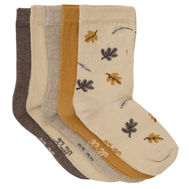 A versatile pack of 5 socks combining solid colors and nature-inspired leaf patterns in elegant silver mink tones. This set features a mix of classic solids, subtle stripes, and delicate leaf motifs perfect for boys who enjoy both style and comfort every day. Crafted from 78% cotton blended with polyester and elastane for softness, durability, and stretch. OEKO-TEX STANDARD 100 certified safe, breathable, and gentle on little feet.