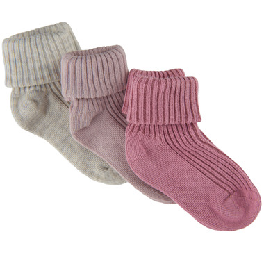 Everyday essentials in soft ribbed knit. This 3-pack includes cozy socks in soft shades of rose smoke, dusty pink, and light grey. Designed for comfort with a wide fold-over cuff that stays in place. OEKO-TEX STANDARD 100 certified gentle on the skin and free from harmful substances.