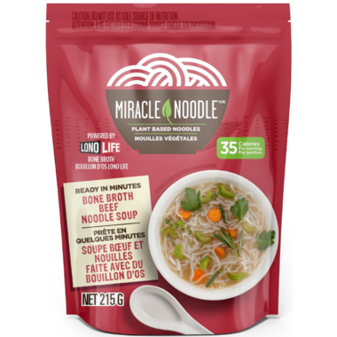 Powered by Lono Life bone broth, these plant base Miracle Noodle Bone Broth Beef Noodle Soup is ready in minutes and only 35 calories per serving.