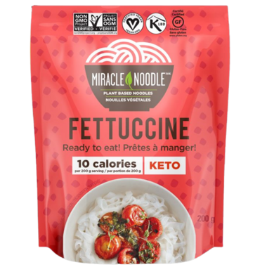These plant based Miracle Noodle Ready to Eat Fettuccine Hair Style Noodles are recipe ready and only 10 calories per 200g serving