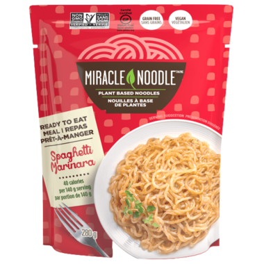 Miracle Noodles Spaghettie Marinara is a ready to eat meal made of plant based ingredients!