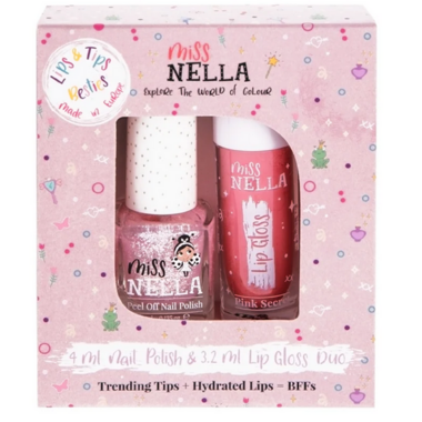 Miss Nella Besties Duo Lip Gloss Pink Secret + Peel Off Nail Polish