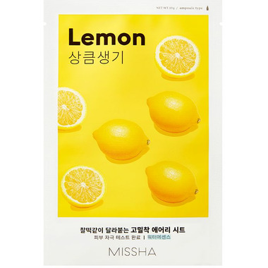 MISSHA Airy Fit Sheet Mask Lemon (19 g) is a lightweight, ultra-thin cellulose sheet mask designed to brighten and revitalize dull, tired skin. Infused with Citrus Limon (Lemon) Fruit Extract and Vitamin Crich botanicals, it helps improve skin clarity, even out tone, and restore natural radiance. The Airy Fit technology ensures a breathable, second-skin fit that enhances absorption of the refreshing water-type essence without leaving residue or heaviness.