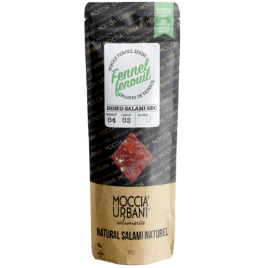 Moccia & Urbani Natural Salami Mild Fennel is a dried salami sec with whole fennel seeds.