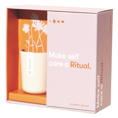 Grow, steep and sip. The Modern Sprout Live Well Gift Set - Ritual encourages you to take a moment for yourself everyday. Chamomile is the perfect herbal pairing for this all-in-one ceramic tea steeper and mug.