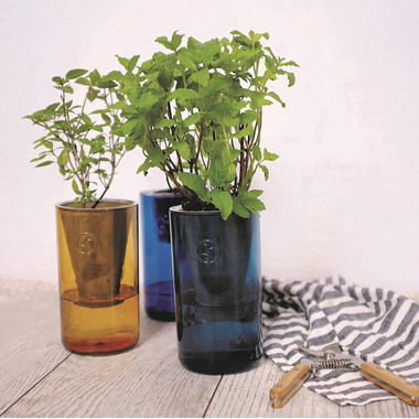 Modern Sprout Tumblers feature a sophisticated colored glass cylinder, two seed types and an extended stainless net pot that wicks water through the growing medium. So whether you forget to water, overwater, or both, you're covered. This year-round indoor planter comes equipped with everything you’ll need to start growing, just add water and set in a sunny window. Designed to be reused.
