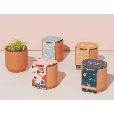 Petite natural terracotta grow kit is outfitted with a self-watering system.