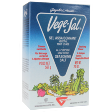 This Delightful all-purpose vegetable mineral salt seasoning is a unique blend of natures finest salt crystals combined with 14 of the choicest fresh-dried leaf and root vegetables. Plus tangy sea greens and the tastiest soybean-yeast concentrate. It all adds up to an exciting new tastemaker that's too good to miss. Use as you would with ordinary table salt.