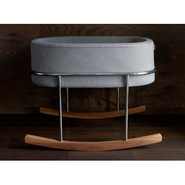 Monte's Rockwell Bassinet is synonymous with ultimate modern luxury; it is the perfect combination of beautiful materials and a soothing rock for your little one. Its streamlined chrome stand with solid walnut rocking feet is beautifully contrasted to the soft upholstered basket that can be removed and transported to different rooms in your home (or the Grandparents' home!). When you are finished with the bassinet, the basket alone makes an excellent spot to store all your baby's new stuffies!