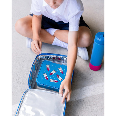 The Bento Five fits in MontiiCo's Large and Medium Insulated Lunch Bags and along side a Bento Two inside the Large Lunch Bag.
