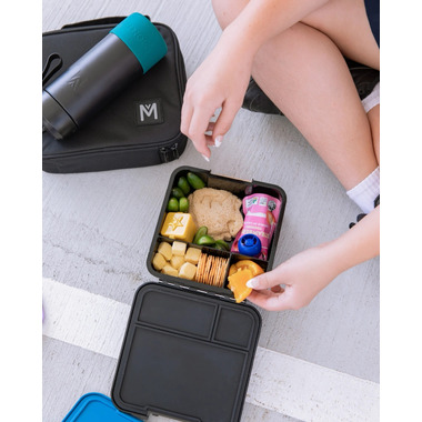 Bento Three fits in Montii Co's Large and Medium Insulated Lunch Bags and