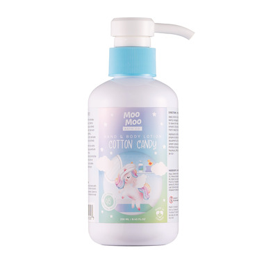 Moo Moo Bath Co.'s delicate natural lotion hydrates and nourishes, while the scent of sweet Cotton Candy makes every cleansing a fun and delighting experience.