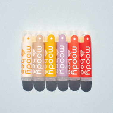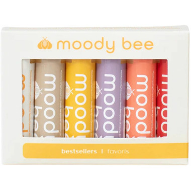 Contains Moody Bee's best sellers: Pure, Coconut Cream, Vanilla Peppermint, Lavender London Fog, Pink Grapefruit, and Strawberry.