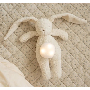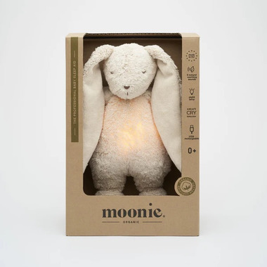 Discover the next generation of peaceful sleep for your baby with the MOONIE 2.0 Organic Humming Bunny. Lovingly crafted from certified organic cotton, this beautifully designed plush toy soothes little ones with real recordings of pink noise, calming nature sounds, and timeless classical music by Claude Debussy. Create a personalized bedtime ritual with adjustable volume and humming time, while the smart cry detector automatically reactivates comforting sounds when baby stirs. A gentle shake illuminates the integrated night lamp, offering seven soft, colorful lights that help your child feel secure. The convenient voice recording function allows you to add a personal touch by recording your own lullaby or message.