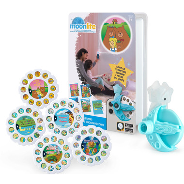 Using the free Moonlite app and the award-winning Moonlite Storybook Projector (included), pop in one of the Gift Packs Story Reels and project beautiful storybook illustrations onto any surface! Moonlite is lightweight and the perfect size to carry with you wherever you go. Read your favorite fairy tales again and again with the Moonlite Fairy Tale Gift Pack!