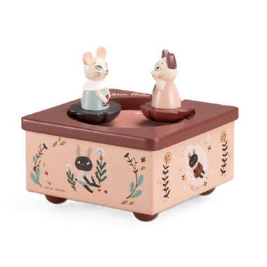 Musical box illustrated with delicate designs by Lucille Michieli. Open the box and watch the cat turn round and round with her cotton reel, to the sound of a gentle melody. There's also a small drawer at the side for precious little secrets.