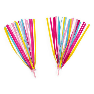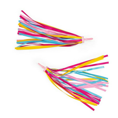 Decorate your bike or scooter with these multicoloured streamers. Easy to install, just clip them to the ends of the handlebars. Now hop on your bike proudly, streamers in the wind, off you go! So stylish!