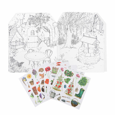 Colouring book with 120 stickers on the theme of a walk in the garden. Stroll among the vegetable garden, pond or orchard to observe life in the garden and colour it in, then add colours and even more flower using the stickers!