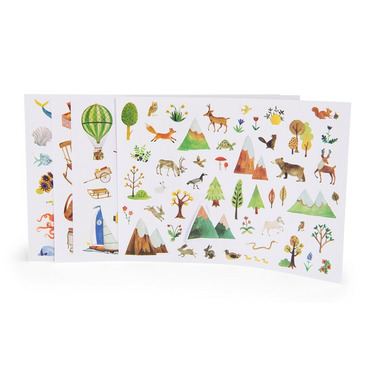 Pack of 154 repositionable adventure-themed stickers to create pretty decorations. Easy to grab and peel to introduce little ones to their first creative activities.Contains 4 sheets.