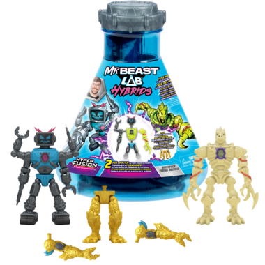 Standing at 4 inches (10.16 cm) tall with 10 points of articulation, Mr. Beast Lab Hybrids are built for action and the perfect toy for kids! Each Multi Pack contains 2 complete Hybrid Beasts inside plus parts of the Golden Panther Dragon that are waiting to be revealed. Fuse, customize, and expand your Mr. Beast Lab Hyper Fusion collection start creating today!
