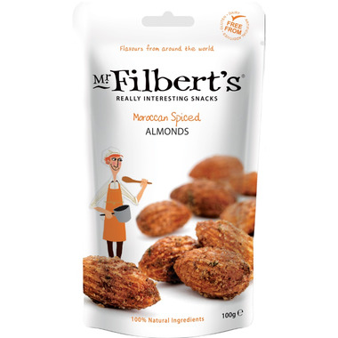 Mr. Filbert's Moroccan Spiced Almonds contain the finest pure and natural ingredients. Combined in their own unique way to produce a warm chilli flavor with a contrast of cool mint.