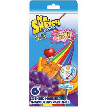Mr. Sketch Scented Stix Washable Markers feature a washable formula to make colouring more fun for children. Each bold, vibrant colour comes with its own fun scent. The fine-point tip is perfect for creating sharp, detailed lines. These markers are safe for children over 3 years of age.