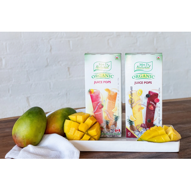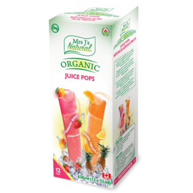 Mrs J's Natural Organic Juice Pops are a healthy frozen indulgence for all ages.  Perfect for an after school snack, mid-day treat or on a hot summer day. Flavours of Tropical Passion & Berry Blast make this alternative juice snack a true treat with no added sugar.