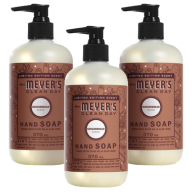Mrs. Meyer's Clean Day Liquid Hand Soap, special edition Gingerbread scent, is only available for a limited time during the festive season. This special seasonal scent smells like fresh-out-the-oven Gingerbread. Warming nutmeg & spiced cinnamon bring back cozy kitchen memories. Plus, sweet brown sugar, the icing on top!