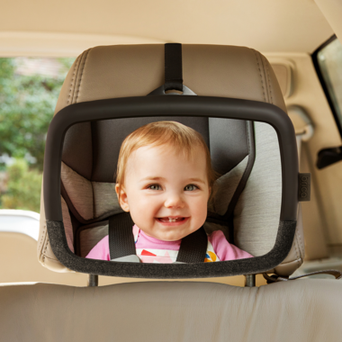 When you're on the go with precious cargo, nothing beats glancing in the rear view and seeing your baby's sweet face. With little ones in rear-facing car seats, the right backseat mirror delivers added peace of mind while you drive. The Brica 360 Baby In-Sight mirror lets you see your rear-facing baby with ease! Its 360-degree pivot mechanism allows you to find the perfect angle, while the extra-large size provides a superior distortion-free view. With durable seat belt material straps, this car seat mirror is as secure as can be, while matching your carΒs interior, too. It's also shatter-resistant and crash-tested, ensuring the safest journey possible. Time to hit the road with the sweetest view!