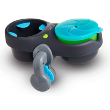 Snack attack, no problem. With Brica Deluxe Snack Pod, you can keep juice, crackers or cereal in reach, off the floor and out of the seat cushions with the spill resistant feature.
