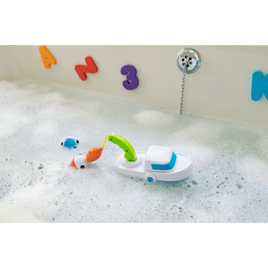 Tub time is synonymous with play time, and play is how toddlers learn best. Get ready for a reel good bath with the Deep Sea Fishin Magnetic Fishing Bath Game! Your little one will fall hook, line and sinker for this adorable boat toy with magnetic fish and removable fishing rod. Aside from the obvious fun element, game play is essential for building life skills like problem solving and patience. This one encourages hand-eye coordination, too! Getting clean, having fun, and learning at the same time? That'll surely float everyones boat.
