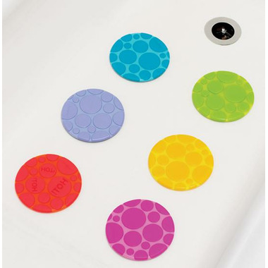 6 textured tub grips help prevent slipping in the tub.
