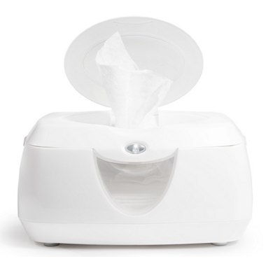 This convenient wipe warming system stores up to 100 standard baby wipes and dispenses them conveniently from a flip-top lid. Its low-voltage, top-down warming system ensures a warm wipe every time without the risk of browning, drying, or discoloration. It also features a soft glow night light that helps with nighttime changes and automatically shuts off after 10 minutes of use. A built-in window allows you to keep tabs on your wipes supply without opening the unit, while the tightly sealing system keeps wipes moist over time.