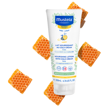Mustela’s beeswax, is combined with Cold Cream to nourish baby's skin while also preserving the skin barrier.