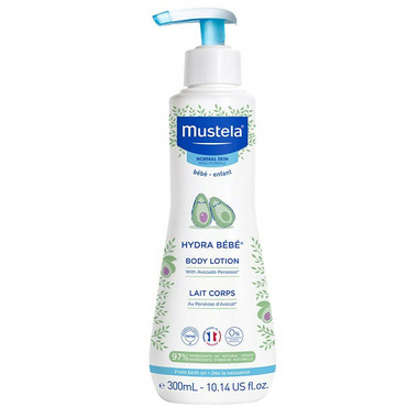 Mustela's best-selling daily moisturizing Hydra Bébé Body Lotion provides immediate and long-lasting moisture for dry baby skin. Formulated with Jojoba Oil, Sunflower Oil, Vitamins E and F, Sweet Almond Oil, Shea Butter, and their signature Avocado Perseose, its non-greasy formula penetrates immediately, leaving the skin silky-smooth and moisturized.