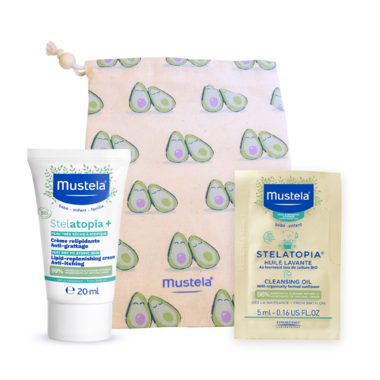 Mustela Stelatopia+ Lipid-Replenishing Cream: The lipid-replenishing cream, anti-itching, certified organic contains 99% of ingredients of natural origin. The remaining 1% provide a pleasant texture and long-term protection. INGREDIENTS : AQUA /WATER /EAU, HELIANTHUS ANNUUS (SUNFLOWER) SEED OIL*, GLYCERIN, CAPRYLIC/CAPRIC TRIGLYCERIDE, BUTYROSPERMUM PARKII (SHEA) BUTTER*, C10-18 TRIGLYCERIDES, SUCROSE STEARATE, HELIANTHUS ANNUUS (SUNFLOWER) SEED OIL UNSAPONIFIABLES*, PERSEA GRATISSIMA (AVOCADO) OIL*, ALPHA-GLUCAN OLIGOSACCHARIDE, BENTONITE, GLYCERYL CAPRYLATE, XANTHAN GUM, SODIUM BENZOATE, SODIUM STEAROYL GLUTAMATE, CITRIC ACID, TOCOPHEROL