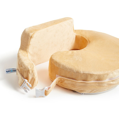 More lumbar support to ensure mom is most comfortable in the right position and to help prevent back aches increased height and thickness in front cushion to more easily comfort baby and lift baby closer to the breast so mom doesn't have to bend OR hunch over. The water proof inner cover protects the Pillow's core from moisture and helps make cover changes easier and faster.