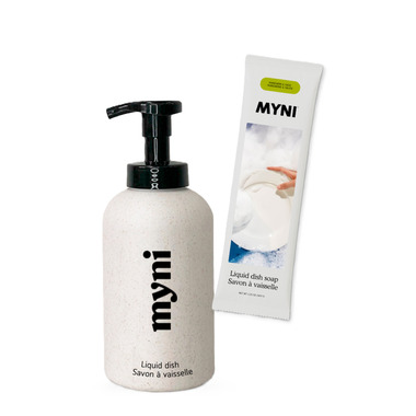 Ditch the gloves! Experience a new way to wash dishes with Mynis powder to gel liquid dish soap. The formula is non-toxic, eco-friendly, soft for your hands and tough on grease. In the bottle, mix the packet with 350 ml of water and get sensitive skin safe liquid dish soap. The kit contains one bottle and one refill of the product.