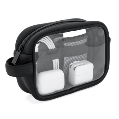 Store and organize your chargers, cords and tech accessories with this versatile charger case. Perfect for travel, home or hybrid office. Made of Premium Lycra Neoprene, and includes inner mesh pockets for smaller accessories and a carrying handle.